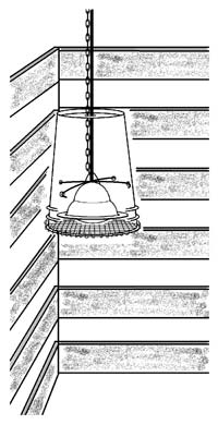 The safety chain, if one is used, is attached to the heat-lamp housing using a piece of twisted wire or snap link. The chain is then run through the hole in the floor of the bucket.