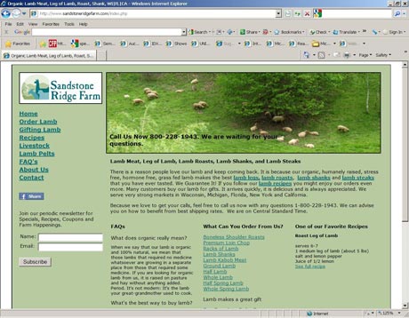 If a customer does click and place an internet order with Sandstone Ridge Farm, Lisa or James will likely follow up with a phone call. Among other things, they will clarify the order and explain that packages of frozen lamb are not completely uniform. James and Lisa are striving for uniformity, however.