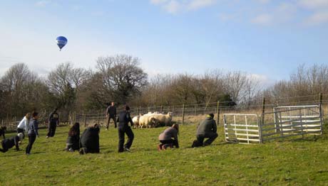 The teams are filmed as they work to round up the sheep and the video is played back to them to show the different roles of each participant.